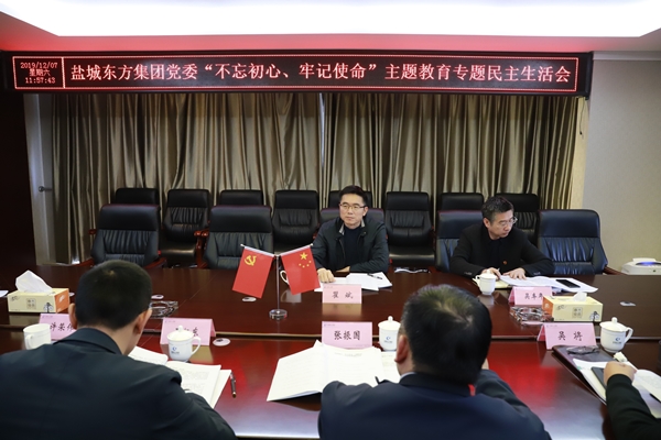 12月7日上午,鹽城東方集團(tuán)黨委領(lǐng)導(dǎo)班子召開“不忘初心、牢記使命”主題教育專題民主生活會(huì)。會(huì)議聚焦“不忘初心、牢記使命”這一主題,緊扣學(xué)習(xí)貫徹習(xí)近平新時(shí)代中國(guó)特色社會(huì)主義思想和黨的十九屆四中全會(huì)精神這一主線,按照“四個(gè)對(duì)照”“四個(gè)找一找”的要求,盤點(diǎn)收獲、檢視問題、深刻剖析,真正做到觸及問題實(shí)質(zhì)、觸動(dòng)思想靈魂,推動(dòng)鹽城東方集團(tuán)高質(zhì)量發(fā)展。