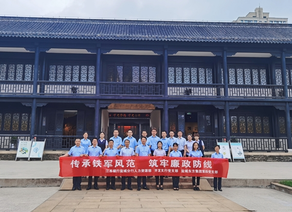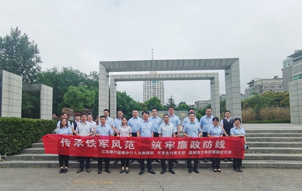 為進(jìn)一步推動(dòng)黨史學(xué)習(xí)教育走深走實(shí),在統(tǒng)籌共建中增強(qiáng)黨組織凝聚力與戰(zhàn)斗力,推動(dòng)黨員同志知黨史、知敬畏、守底線、干實(shí)事, 6月16日,鹽城東方集團(tuán)第四黨支部與江蘇銀行鹽城開發(fā)支行黨支部,共赴鹽城泰山廟新四軍重建軍部舊址、鹽城廉政文化公園開展“傳承鐵軍風(fēng)范 筑牢廉政防線”主題黨日活動(dòng)。
