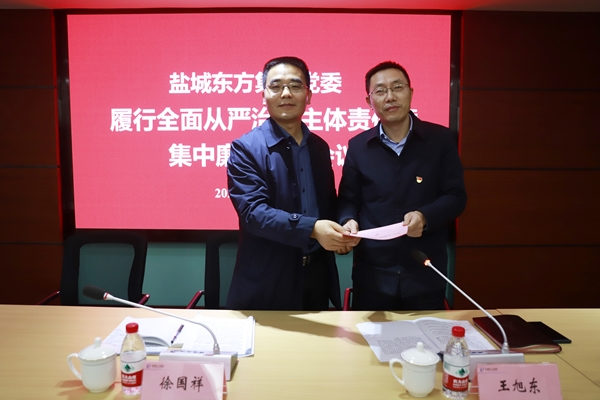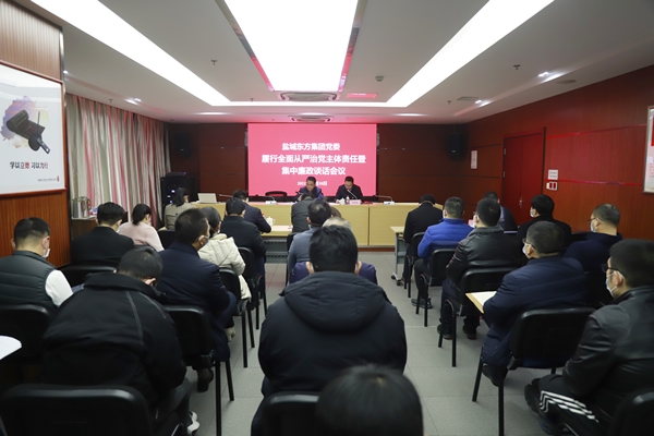 2022年元旦、春節(jié)臨近,為認真貫徹落實區(qū)黨工委會議精神,進一步壓實黨委履行全面從嚴治黨責任,對集團黨員干部節(jié)前再提醒,營造風清氣正的廉潔過節(jié)氛圍,12月30日下午,根據(jù)區(qū)紀工委統(tǒng)一部署,鹽城東方集團召開黨委履行全面從嚴治黨主體責任暨集中廉政談話會議。區(qū)紀工委副書記徐國祥出席會議并對節(jié)日期間作風建設工作提要求。集團黨委書記、董事長、總經(jīng)理王旭東主持會議并開展集中廉政談話。
