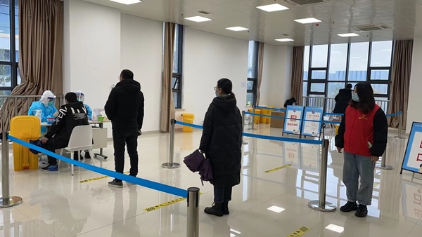 “咱們排好隊(duì),請(qǐng)保持一米以上安全距離。”“麻煩用手機(jī)掃個(gè)碼。”在國(guó)際會(huì)展中心擴(kuò)建現(xiàn)場(chǎng)核酸檢測(cè)點(diǎn),黨員志愿者孟沖沙啞的聲音一遍又一遍提醒著。不少工人對(duì)手機(jī)操作不熟悉,他便耐心指導(dǎo)、手把手協(xié)助,幫助工友們安全、高效地完成核酸采集。在大家的齊心協(xié)力下,集團(tuán)工程條線對(duì)14個(gè)在建工地人員進(jìn)行全面摸排,全員應(yīng)檢盡檢、不漏一人。