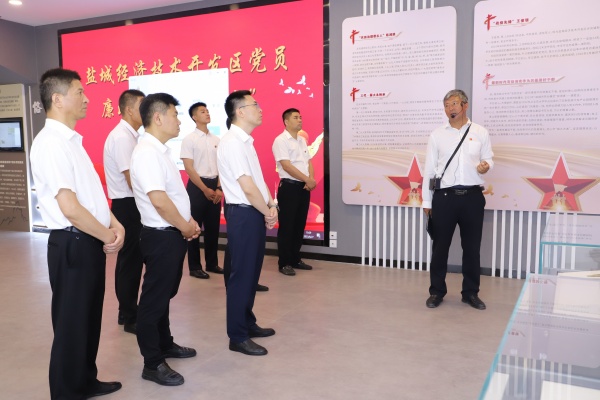 在五條嶺烈士陵園內,全體黨員同志莊嚴佇立,向革命先烈敬獻花籃,大家面對黨旗莊嚴宣誓,銘記歷史,感悟不朽的革命精神。陳列館內,五條嶺烈士陵園第三代守墓人卞康全同志為大家詳細講解了鹽南阻擊戰(zhàn)、五條嶺烈士安葬等事跡,結合“從爭取和平到保衛(wèi)邊區(qū)”“從堅持斗爭到反攻作戰(zhàn)”“從全境解放到全國解放”“難忘五條嶺”展廳形象地介紹了鹽阜軍民攜手作戰(zhàn)的光輝歷史。
