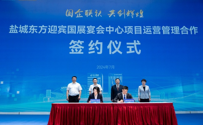 國(guó)企聯(lián)袂 共創(chuàng)輝煌丨鹽城東方迎賓國(guó)展宴會(huì)中心項(xiàng)目運(yùn)營(yíng)管理合作簽約儀式舉行