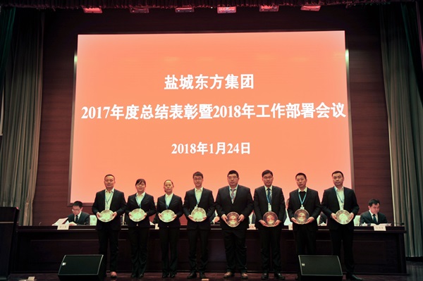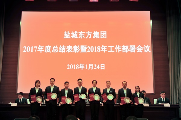 會議對15個先進(jìn)集體和25名先進(jìn)個人進(jìn)行了表彰;播放了東方集團(tuán)2017年發(fā)展回眸、2018年工作展望專題片《轉(zhuǎn)型創(chuàng)新東方紅》;6名集團(tuán)員工代表從不同層面作了表態(tài)發(fā)言;集團(tuán)班子成員依次向張振國遞交黨的建設(shè)責(zé)任書、安全生產(chǎn)責(zé)任書。