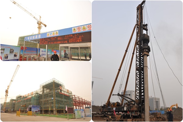 左上圖為北師大附校項(xiàng)目工地入口農(nóng)民工實(shí)名制通道,左下圖為東方機(jī)械電子廠房項(xiàng)目部分樓層封頂,右圖為未來科技城項(xiàng)目二期工程樁基施工。