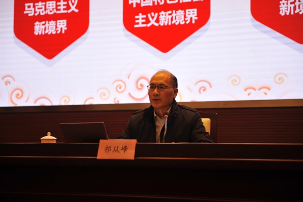 在報告中,祁書記緊扣黨的十九大報告原文,綜合運用文字、圖片、視頻等新媒體形式,重點圍繞黨的十九大的主題和主要成果、習(xí)近平新時代中國特色社會主義思想、過去五年的歷史性成就和歷史性變革、中國特色社會主義進(jìn)入新時代和黨的歷史使命、我國社會主要矛盾的變化、兩個一百年奮斗目標(biāo)的戰(zhàn)略部署、我國經(jīng)濟社會發(fā)展重大戰(zhàn)略部署、堅定不移推進(jìn)全面從嚴(yán)治黨等八個方面,全面系統(tǒng)闡釋了十九大的精神實質(zhì)和豐富內(nèi)涵。