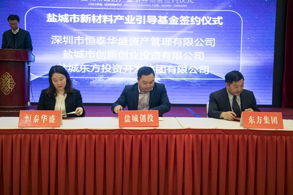 峰會中共有鹽城市新能源、新材料、節(jié)能環(huán)保、智能終端產(chǎn)業(yè)引導基金4支基金正式簽約,其中總規(guī)模5億元的鹽城市新材料產(chǎn)業(yè)投資引導基金由東方集團和市創(chuàng)投公司共同發(fā)起設立。東方集團黨委書記、董事長張振國代表鹽方與項目基金管理公司深圳華盛資管公司董事長郝丹正式簽約。