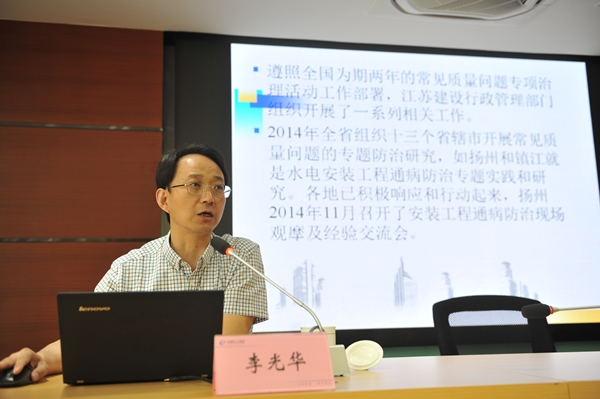 在建筑工程中,質(zhì)量通病的發(fā)生會(huì)引起人們對(duì)工程質(zhì)量問(wèn)題的投訴,成為社會(huì)的熱點(diǎn)話題。李站長(zhǎng)首先為大家介紹了《江蘇省住宅工程質(zhì)量通病控制標(biāo)準(zhǔn)(DGJ32/J16-2014)》實(shí)施的背景、意義及標(biāo)準(zhǔn)組成部分。隨后從地基基礎(chǔ)、地下防水、混凝土結(jié)構(gòu)、屋面工程等方面詳細(xì)講解質(zhì)量通病及防治措施,同時(shí)向大家列舉親身經(jīng)歷的相關(guān)工程設(shè)計(jì)、原材料、施工過(guò)程中所出現(xiàn)的各類問(wèn)題和現(xiàn)象,條理清晰、面面俱到,闡述過(guò)程通順流暢。李站長(zhǎng)嚴(yán)謹(jǐn)治學(xué)的授課方式也給大家留下了深刻的印象。
