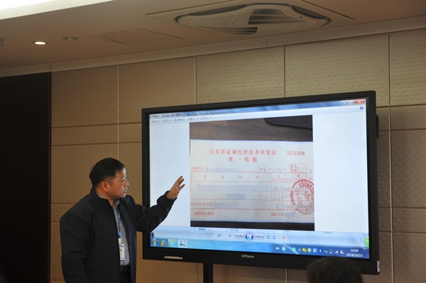交流檢查過程中,北師大鹽城附屬學(xué)校以及綜保區(qū)二期項目負(fù)責(zé)人演示了工程實施過程中的部分OA審批流程。