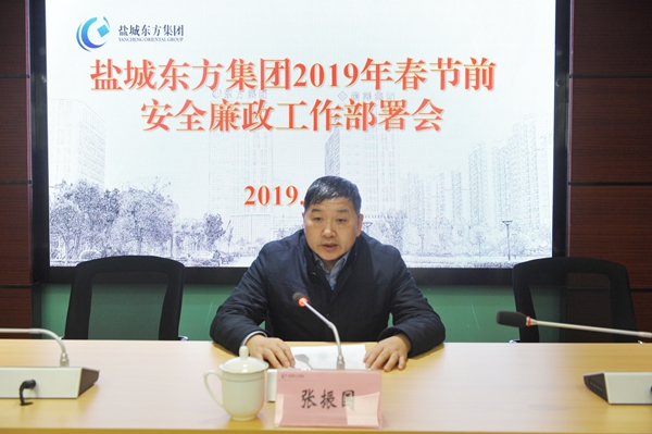 22日,鹽城東方集團組織集團各部門、子公司負責人召開“2019年春節(jié)前安全廉政工作部署會”,集團黨委書記、董事長張振國就春節(jié)前的安全生產(chǎn)、廉潔過年等重點工作做安排部署和友情提醒。