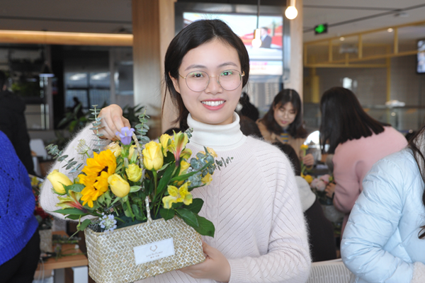 陽(yáng)春三月,鮮花在公司女員工手中悄然綻放,帶來(lái)了春天的氣息,也帶來(lái)了節(jié)日的歡樂(lè)。員工們紛紛表示,參加此次活動(dòng)感覺(jué)到非常興奮,此次活動(dòng)不僅豐富廣大女員工的文化生活,而且提高了大家花卉藝術(shù)修養(yǎng),陶冶情操,美化生活。
