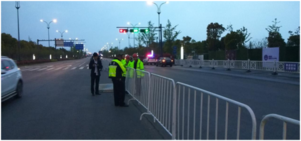 420日,根據(jù)馬拉松線路安排,東方安通公司對鹽瀆路(希望大道-韓資園),五臺山路(鹽瀆路-世紀大道),世紀大道(希望大道-五臺山路),希望大道(世紀大道-鹽瀆路)等25個交叉口封閉,進行賽道隔離。用鐵馬及硬質(zhì)護欄封閉19個廠區(qū)及功能性缺口,并用拒馬封閉工廠門口。據(jù)統(tǒng)計,當日共安裝硬質(zhì)護欄約2000米,鐵馬約7800米,移動拒馬30節(jié),移動護欄100節(jié),投放活動告示牌34塊。