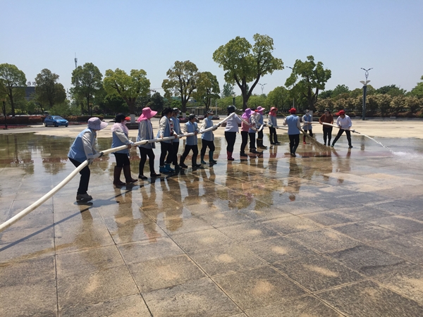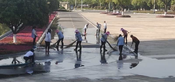 為了給“5.18”提供一個干凈整潔的外部環(huán)境,五一假期的后兩天,東方物業(yè)會展中心環(huán)境部、工程部等工作人員一齊上陣,共同清理鹽城國際會展中心噴泉池和廣場。東方物業(yè)人紛紛拿上鏟子、掃帚、高壓水槍等工具開始忙碌,有的清洗水池的淤泥,刮除附著在水池壁、低的青苔;有的清理腐爛的垃圾;有的用高壓水槍對池壁、池底的污物進行全面沖洗……一番熱火朝天的忙碌后,污水和汗水交融在一起,但大家沒有一句怨言,噴泉池及廣場煥然一新。
