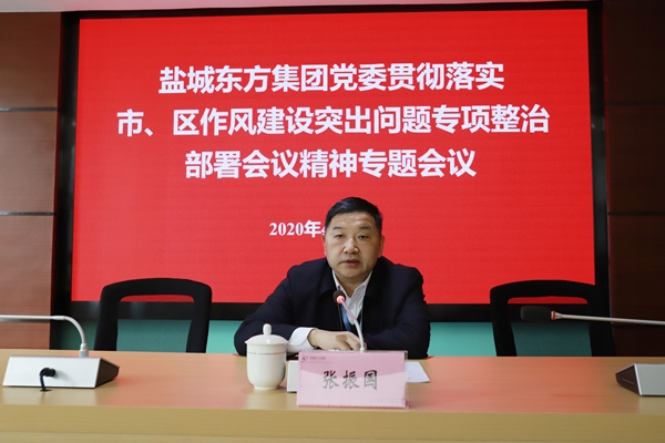 4月10日下午,鹽城東方集團(tuán)黨委召開了貫徹落實(shí)市、區(qū)作風(fēng)建設(shè)突出問題專項(xiàng)整治部署會議精神專題會議。集團(tuán)黨委書記、董事長張振國主持會議,集團(tuán)在鹽領(lǐng)導(dǎo)班子,集團(tuán)公司、東方置業(yè)、東方市政、東進(jìn)控股、永泰投資公司中層以上,其他子公司經(jīng)營層人員參加了會議。
