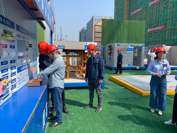 觀摩過程中,大家參觀了悅達(dá)城市廣場施工現(xiàn)場標(biāo)準(zhǔn)化施工樣板區(qū)、在建項(xiàng)目實(shí)體工程和安全標(biāo)準(zhǔn)化工地成果展示區(qū),對悅達(dá)城市廣場項(xiàng)目概括進(jìn)行詳細(xì)了解,并就基礎(chǔ)施工、主體結(jié)構(gòu)施工工藝、做法及過程管控措施與項(xiàng)目參建單位管理人員進(jìn)行了現(xiàn)場探討。觀摩組人員與悅達(dá)城市廣場項(xiàng)目組管理人員就質(zhì)量管理、現(xiàn)場管控、新技術(shù)應(yīng)用、智慧系統(tǒng)亮點(diǎn)等管理亮點(diǎn)等內(nèi)容進(jìn)行了廣泛的交流。