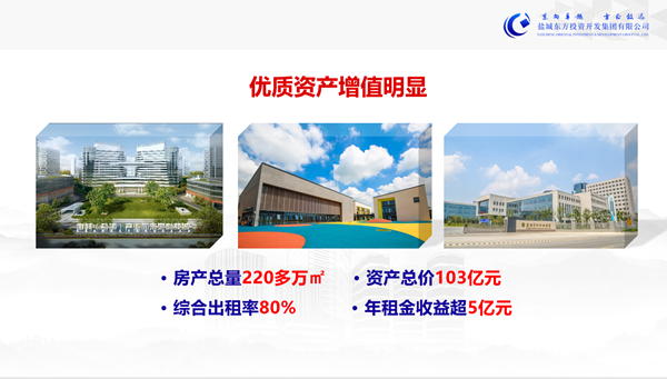 優(yōu)質(zhì)房產(chǎn)增值明顯。持有投資性房產(chǎn)總量220多萬平方米,資產(chǎn)總價值超104億元,其中在上海核心地段持有的三處6.7萬平方米優(yōu)質(zhì)資產(chǎn)目前已升值約20%、價值超50億元,在鹽城經(jīng)開區(qū)建成、在建的標(biāo)廠、寫字樓、學(xué)校、醫(yī)院、安置房等210多萬平方米。