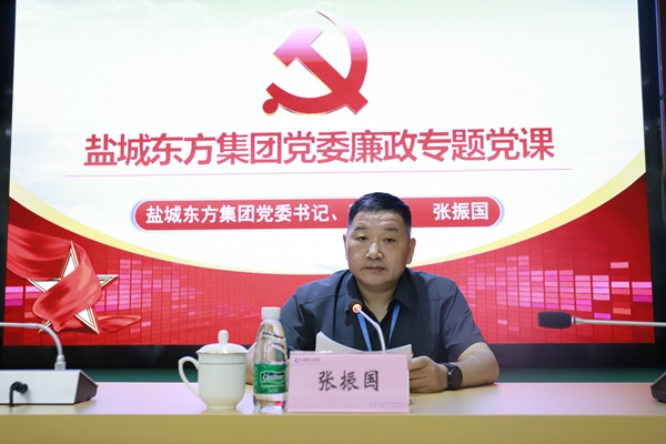 根據(jù)2020年“510”警示教育活動安排,7月10日,鹽城東方集團(tuán)黨委書記、董事長張振國同志圍繞“認(rèn)清責(zé)任、落實行動,自覺扛起全面從嚴(yán)治黨的使命擔(dān)當(dāng)”主題,給集團(tuán)全體黨員上了一堂專題廉政黨課。
