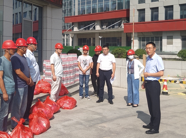819日,王旭東一行前往未來(lái)科技城二三期,SKI項(xiàng)目紅外線(xiàn)供熱管道工程,躍進(jìn)河、興西河、中心河河道整治工程,鹽瀆路(希望大道-天山路)綠化工程等集團(tuán)在建項(xiàng)目工地,為大家送去礦泉水、風(fēng)油精、毛巾等防暑降溫物資,對(duì)項(xiàng)目員工在高溫天氣下堅(jiān)守崗位,全力奮戰(zhàn)一線(xiàn)的責(zé)任擔(dān)當(dāng)表示誠(chéng)摯的敬意和感謝。
