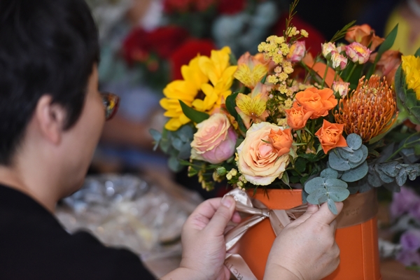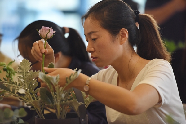一把剪刀,一塊花泥,一個(gè)花籃,一束搭配好的鮮花。在一片芬芳的花香中,插花藝術(shù)創(chuàng)作正式拉開帷幕。