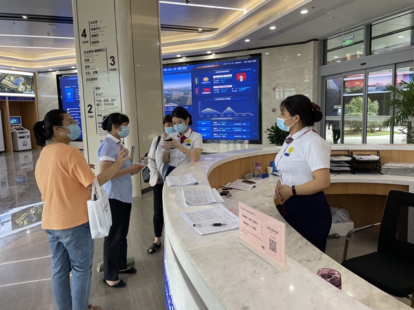集團(tuán)黨員志愿者指導(dǎo)集團(tuán)來訪者掃碼查驗(yàn),做好臺(tái)賬登記。