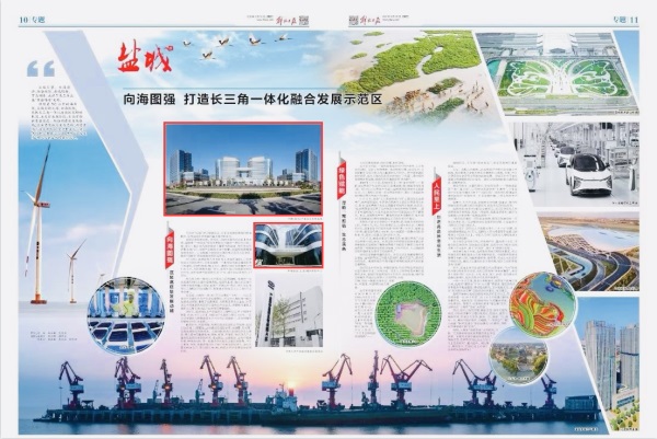 9月15日,上海市委機關(guān)報——《解放日報》10-11版以《鹽城 向海圖強 打造長三角一體化融合發(fā)展示范區(qū)》為題,濃情點贊了鹽城全力打造長三角一體化融合發(fā)展示范區(qū),書寫“強富美高”現(xiàn)代化新篇章的精彩實踐;次日,江蘇省委機關(guān)報——《新華日報》6版刊文《踐行新理念 全面融入新發(fā)展格局——鹽城:綠色賦能 奮力開辟向海發(fā)展新境界》,整版報道了鹽城在全面建成小康社會的偉大征程中,交出了展現(xiàn)“強富美高”鮮明特質(zhì)答卷的亮點回眸。在這兩篇重磅文章中,刊發(fā)了與東方集團相關(guān)的兩幅配圖:一是我司承建并牽頭招商的中韓(鹽城)產(chǎn)業(yè)園未來科技城項目,二是以我司持有的上海保利綠地廣場為載體設(shè)立的“中國鹽城(上海)國際科創(chuàng)中心”,直接反映出東方集團在依托中韓(鹽城)產(chǎn)業(yè)園載體深化對韓交流合作、策應(yīng)市委市政府提出的全面接軌大上海等重要戰(zhàn)略上贏得上級充分肯定,初步實現(xiàn)“鹽城領(lǐng)先、沿海一流、全省有位置、全國有影響”實力國企目標(biāo)。