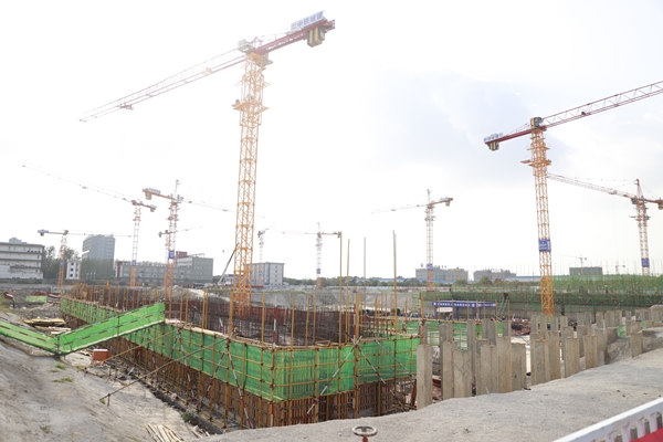 現(xiàn)場檢查的重點(diǎn)項(xiàng)目,所到之處,現(xiàn)場一片繁忙場景,項(xiàng)目施工有條不紊地進(jìn)行。在鳳棲苑項(xiàng)目現(xiàn)場,只見土方運(yùn)輸車輛在挖掘機(jī)的配合下正在有序穿行,將土方源源不斷的運(yùn)出場地;德喜大橋施工現(xiàn)場焊花朵朵,工人們正對鋼拱圈和勁性骨架進(jìn)行嚴(yán)絲密封的焊接作業(yè);德喜花苑施工現(xiàn)場數(shù)十臺塔吊高高聳立,正忙碌地將建筑材料運(yùn)往各個(gè)樓層;尚德商務(wù)樓現(xiàn)場“封頂大吉”四個(gè)大字高高懸掛在施工3區(qū)的頂樓,1區(qū)和2區(qū)的工人正在認(rèn)真綁扎鋼筋;北師大初高中新建宿舍樓和未來科技城北區(qū)工人們正在有序進(jìn)行墻體砌筑等工作……