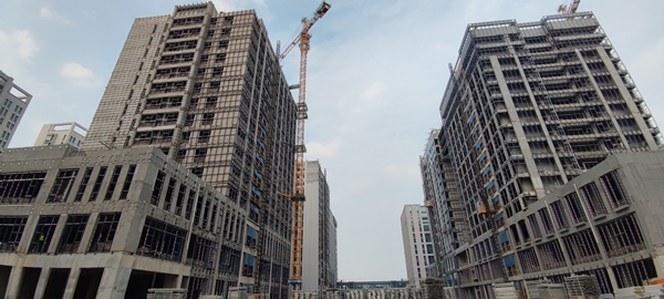 來到未來科技城北區(qū)現(xiàn)場,工人們戴著安全帽和口罩,腰系安全帶,加緊各項施工作業(yè),現(xiàn)場不時響起“鐺鐺”聲。在施工區(qū)域,噴淋、霧炮等作業(yè)和施工同步進行。據(jù)了解,未來科技城北區(qū)項目總占地面積約59畝,總建筑面積近11萬平方米,建設內(nèi)容包含2號樓和5號樓兩棟雙子樓、地下室及附屬工程,其中2號樓為研發(fā)辦公用房,5號樓為服務型公寓及配套商業(yè)。目前,該項目主體結構已通過驗收,正在進行外幕墻裝飾工程、室內(nèi)精裝修工程、機電安裝工程、室外配套工程施工作業(yè)。