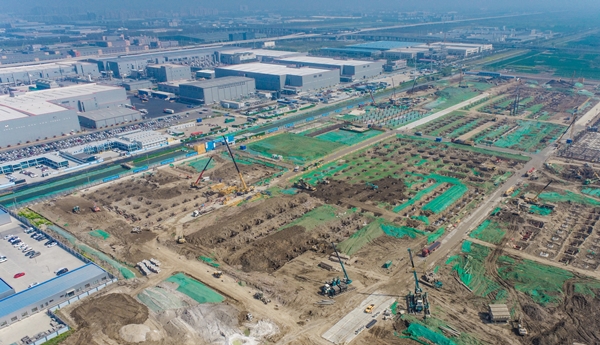 10天完成辦公臨建搭設(shè),18天完成1.4公里河道清淤及換填,45天完成4.56公里“三橫三縱”主路網(wǎng)和9公里雨水、污水、廢水管道貫通,74天完成18895根、總長(zhǎng)度575公里的樁基工程施工……這是今年1月17日開(kāi)工以來(lái),韓國(guó)SK30GWh動(dòng)力電池項(xiàng)目交出的亮成眼“成績(jī)單”。