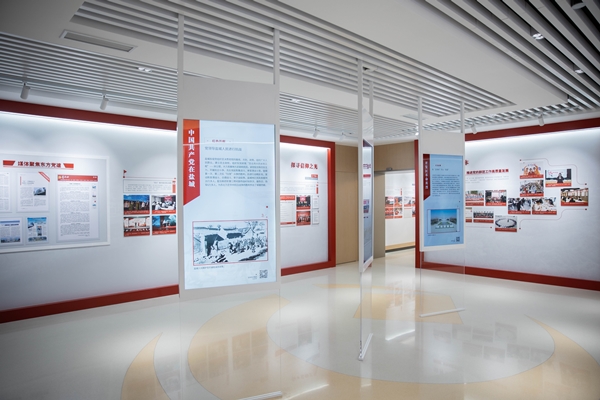 在創(chuàng)意設(shè)計(jì)方面,集團(tuán)整合原有的文化展示中心、廉政教育中心、圖書借閱中心等載體,使全館布展面積達(dá)到500平方米,展廳設(shè)計(jì)“仰望·砥礪初心”“篤信·國企姓黨”“鍛造·紅色堡壘”“誓守·風(fēng)清氣正”“鑄魂·以文化人”“踐行·卓越東方”等六大板塊,呈現(xiàn)權(quán)威、沉穩(wěn)、嚴(yán)謹(jǐn)?shù)忍攸c(diǎn)。在展陳方式上堅(jiān)持守正創(chuàng)新,融圖文、影視、燈光、音效一體,穿插使用滑軌屏、L幕、弧屏等現(xiàn)代科技,努力做到視覺、觸覺、聽覺相融,技術(shù)與藝術(shù)有機(jī)結(jié)合。在功能設(shè)計(jì)方面,把“展示、紀(jì)念、宣傳、教育、研究”五大功能集于一體的東方黨建館總體分為黨建展示區(qū)、黨性體驗(yàn)區(qū)、黨建互動(dòng)區(qū),致力打造集黨史學(xué)習(xí)、黨性淬煉、黨建宣傳、黨群共建、黨員活動(dòng)于一體的紅色家園,使黨建館成為集團(tuán)全力鍛造“鹽城領(lǐng)先、沿海一流、全省有位置、全國有影響”標(biāo)桿國企強(qiáng)勁有力的紅色引擎。