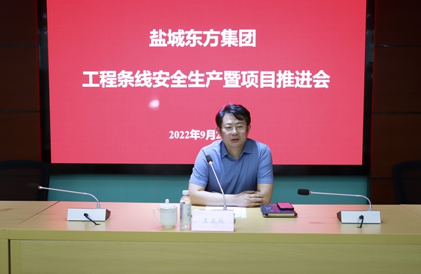 9月24日,集團(tuán)黨委委員、副總經(jīng)理王成林在鹽城東方集團(tuán)1012會(huì)議室,主持召開鹽城東方集團(tuán)工程條線安全生產(chǎn)暨項(xiàng)目推進(jìn)工作會(huì)議,對(duì)落實(shí)集團(tuán)安全生產(chǎn)管理制度措施,高效統(tǒng)籌項(xiàng)目推進(jìn)、安全生產(chǎn)等工作進(jìn)行再安排再部署。