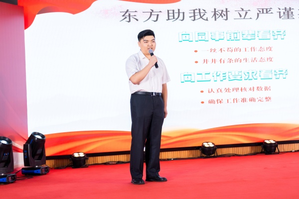 參賽選手有的來(lái)自職能部門,有的來(lái)自項(xiàng)目一線,比賽中,選手們緊緊圍繞主題,以飽滿的熱情、生動(dòng)的語(yǔ)言,通過(guò)講述堅(jiān)守一線、磨煉成長(zhǎng)的故事,講述集團(tuán)改革攻堅(jiān)、勇攀高峰的歷程,真誠(chéng)分享自己與集團(tuán)“共成長(zhǎng)”的工作歷程,抒發(fā)個(gè)人對(duì)集團(tuán)的自豪感、榮譽(yù)感和歸屬感,暢談青年擔(dān)當(dāng)企業(yè)發(fā)展重任,爭(zhēng)當(dāng)時(shí)代先鋒的切身感受。他們聲情并茂,時(shí)而鏗鏘有力,時(shí)而抑揚(yáng)頓挫,用一個(gè)個(gè)慷慨豪邁或感人肺腑的成長(zhǎng)故事把活動(dòng)推向高潮,感染了現(xiàn)場(chǎng)的每一位觀眾,展現(xiàn)了東方青年昂揚(yáng)的精神風(fēng)貌,展示了鹽城東方人只爭(zhēng)朝夕、不負(fù)韶華的時(shí)代風(fēng)采,傳遞了勇往直前、奮發(fā)有為的時(shí)代力量。