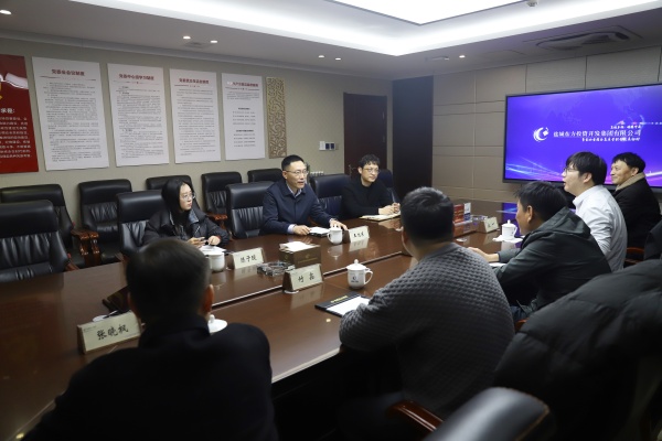 1月5日,北京麥芽田網絡科技有限公司董事長田偉、成都壹立科技董事長付鑫一行到鹽城東方集團考察交流。鹽城東方集團黨委書記、董事長、總經理王旭東在集團1121會議室熱情接待了田偉一行。