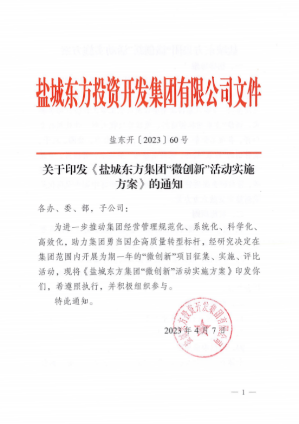 去年初,鹽城東方集團(tuán)通過開展“微創(chuàng)新”活動(dòng),鼓勵(lì)集團(tuán)全員立足本職崗位、堅(jiān)持問題導(dǎo)向,從小建議、小創(chuàng)造、小革新等“小切口”入手,助力提高運(yùn)營效率、完善管理流程、提升經(jīng)營業(yè)績。