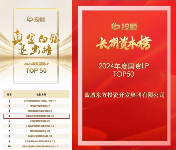 股權(quán)退出收益顯著,2024年度實(shí)現(xiàn)股權(quán)退出收益7.55億元,其中富創(chuàng)精密項(xiàng)目全部減持退出,凈收益率超2.5倍,集團(tuán)累計(jì)實(shí)現(xiàn)股權(quán)退出分配超49.3億元。鹽城東方集團(tuán)在行業(yè)榜單中屢獲佳績(jī),再度榮登“GP/LP真金白銀退出榜”,位列“2023年度國(guó)資LP TOP50”第4位,較2022年上升13位次,成為鹽城唯一連續(xù)三年入圍的國(guó)企。2025年1月,又榮登“2024年度國(guó)資LP”TOP50第39位,是鹽城首家躋身該榜單的國(guó)有企業(yè)。