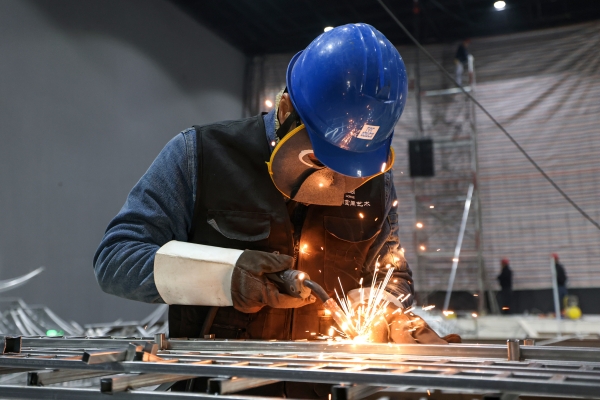 走進項目施工現(xiàn)場,施工人員分布在各個樓層,正有序進行室內(nèi)裝修工程。點焊火焰接觸發(fā)出的“滋滋”聲、電錘電鉆發(fā)出的“嗡嗡”聲、貼地磚小錘子發(fā)出的“篤篤”聲交織成春日大干的進行曲。