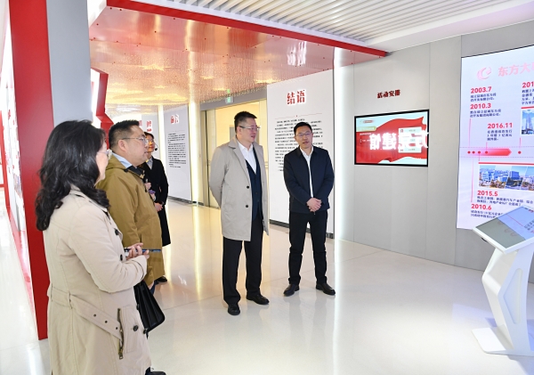在王旭東的陪同下,考察團首先參觀了東方黨建館。通過仰望·砥礪初心、篤信·國企姓黨、鍛造·紅色堡壘等模塊展示,東方集團以“卓越黨建”品牌建設為抓手、創(chuàng)造性地實施黨建促主業(yè)“333”工程的生動案例,給考察團留下了深刻印象。