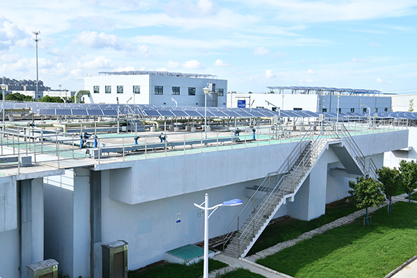 在“雙碳”目標(biāo)引領(lǐng)下,分布式光伏與污水處理廠的融合發(fā)展正成為城市綠色轉(zhuǎn)型的重要實(shí)踐。走進(jìn)第二污水處理廠,在生化池和深度處理池的頂部,一排排光伏發(fā)電板在陽光照射下顯得格外耀眼。“光伏板上發(fā)電、光伏板下凈水”——光伏板對池體的遮擋可抑制藻類生長,提升污水處理效率,而光伏電力的自給自足,使污水處理廠從高耗能單元轉(zhuǎn)變?yōu)榫G電供應(yīng)節(jié)點(diǎn),第二污水處理廠也借此機(jī)會(huì)升級成了名副其實(shí)的“綠色工廠”。