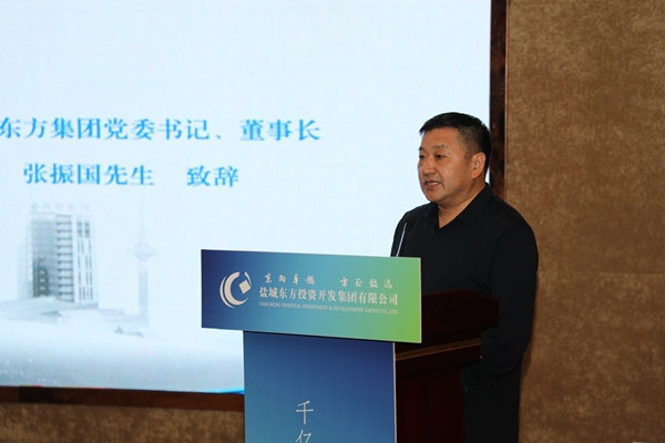 鹽城東方集團(tuán)黨委書(shū)記、董事長(zhǎng)張振國(guó)向長(zhǎng)三角新全媒聯(lián)合體作專題推介。
