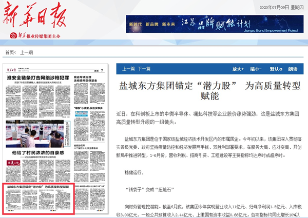 79日,《新華日報》第7版以《鹽城東方集團錨定“潛力股”為高質(zhì)量轉(zhuǎn)型賦能》為題,聚焦鹽城東方集團如何對沖疫情壓力,釋放潛能,實現(xiàn)上半年經(jīng)濟指標“全線飄紅”的重要舉措和做法。