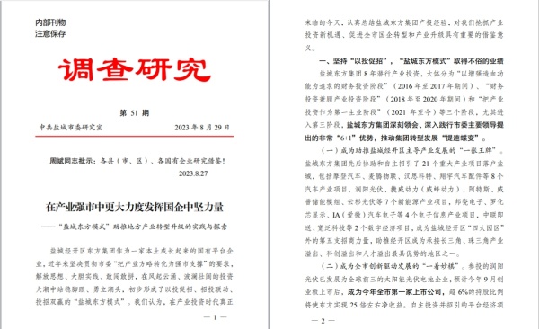 總結(jié)提煉的以投促招、招投聯(lián)動(dòng)、投招雙贏的“鹽城東方模式”一文在市委《調(diào)查研究》上登載,集團(tuán)重點(diǎn)工作首次獲得市委主要領(lǐng)導(dǎo)批示肯定,要求各縣(市、區(qū))、各國(guó)有企業(yè)研究借鑒,并在全市高質(zhì)量發(fā)展觀摩會(huì)上印發(fā),產(chǎn)生轟動(dòng)效應(yīng)。